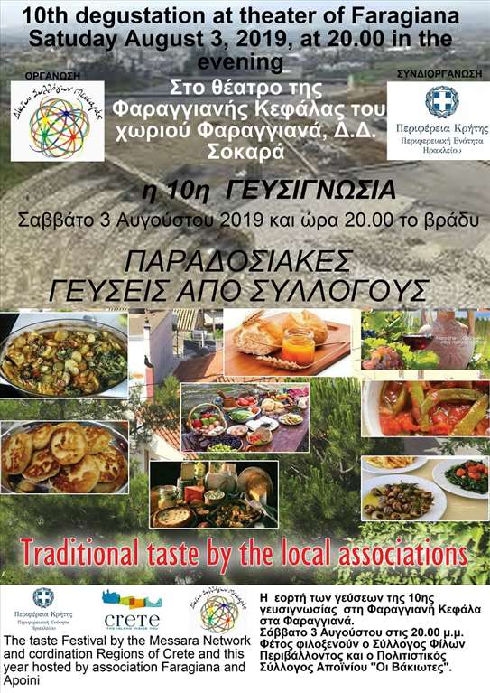 Ταυτόχρονα, το Δίκτυο Συλλόγων Μεσσαράς προσκαλεί Συλλόγους να μαγειρέψουν, παραγωγούς και μεταποιητικές επιχειρήσεις της περιοχής που ασχολούνται με προϊόντα διατροφής (τρόφιμα, ποτά, κρασί, ρακί, βότανα κλπ.) να τα προβάλλουν τη βραδιά της γευσιγνωσίας.