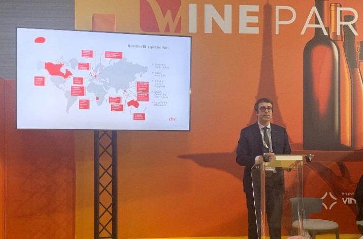 Παρουσιάζοντας την εξέλιξη των παγκόσμιων εξαγωγών κρασιού από το 1924 έως το 2023, στις 11 Φεβρουαρίου στην εμπορική έκθεση Wine Paris, ο Δρ. John Barker, Γενικός Διευθυντής του Διεθνούς Οργανισμού Αμπέλου και Οίνου (OIV), τονίζει ότι τα γραφήματα αφηγούνται την ιστορία της διεθνοποίησης του εμπορίου κρασιού, το οποίο συνέχισε να αναπτύσσεται από τη μεταπολεμική περίοδο. Μια καμπύλη παγκοσμιοποίησης που δείχνει μόνο την κορυφή του παγόβουνου, όπως αποδεικνύεται από τον Giorgio Delgrosso, επικεφαλής στατιστικών στον OIV, ο οποίος παρουσιάζει τα πρώτα στοιχεία μιας μελέτης για τις ροές επανεξαγωγής: κρασιά που εισάγονται σε μια χώρα όπου υποβάλλονται σε επεξεργασία, κυρίως συσκευασίας.