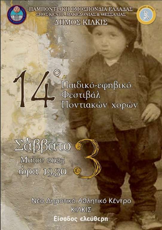 Η ψυχή του Πόντου, οι χορευτικές παραδόσεις που κάνουν ξεχωριστή την πολιτιστική του ταυτότητα, θεριεύει περήφανη στο 14ο Παιδικό – Εφηβικό Φεστιβάλ Ποντιακών Χορών, που θα πραγματοποιηθεί το ερχόμενο Σάββατο 3 Μαϊου στο νέο Δημοτικό Αθλητικό Κέντρο Κιλκίς.
