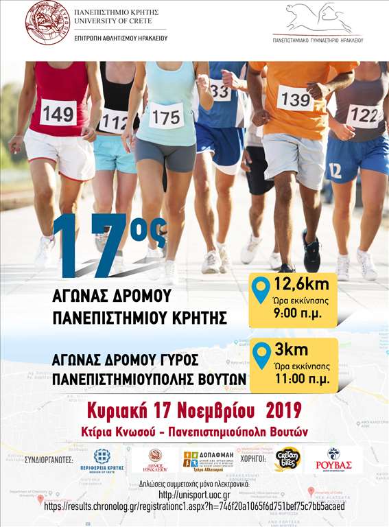 17ο Αγώνα Δρόμου Πανεπιστημίου Κρήτης την Κυριακή 17 Νοεμβρίου 2019.