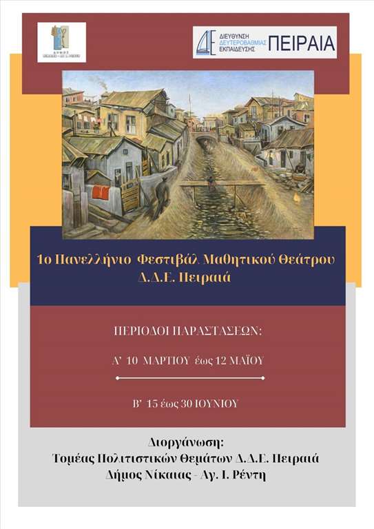 1ο Πανελλήνιο Μαθητικό Φεστιβάλ Θεάτρου Διεύθυνσης Δευτεροβάθμιας Εκπαίδευσης Πειραιά σε συνεργασία με τον Δήμο Νίκαιας-Αγ.Ι. Ρέντη