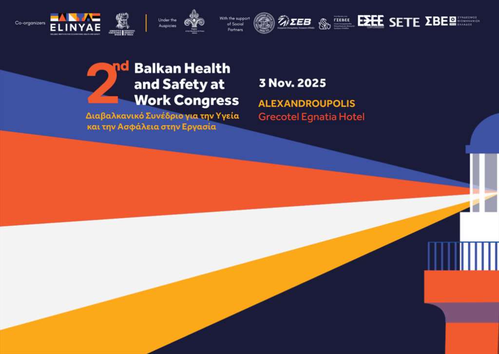 Το 2ο Διαβαλκανικό Συνέδριο για την Υγεία και την Ασφάλεια στην Εργασία (ΥΑΕ) διοργανώνει το Ελληνικό Ινστιτούτο Υγείας και Ασφάλειας στην Εργασία (ΕΛ.ΙΝ.Υ.Α.Ε.) σε συνεργασία με το Δημοκρίτειο Πανεπιστήμιο Θράκης στις 3 Νοεμβρίου 2025, στην Αλεξανδρούπολη, στο Grecotel Egnatia Hotel.