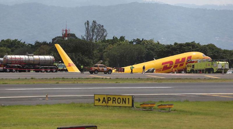 Boeing 757-200 operado por DHL que iba de Costa Rica a Guatemala, aterriza de emergencia en el Aeropuerto Internacional Juan Santamaría de Costa Rica por problemas hidráulicos, se sale de la pista y se parte en dos, ninguno de los pilotos salió lastimado:https://t.co/Wvs37iBI5I pic.twitter.com/8DlJduxRfB