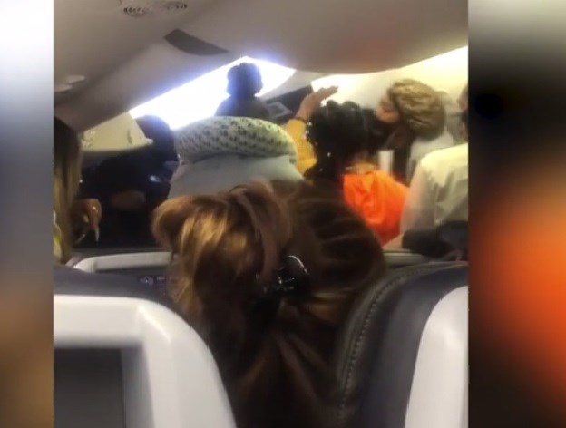 Στο βίντεο που έχει γίνει viral, διακρίνεται ένας επιβάτης σε έξαλλη κατάσταση, να πετάει ένα μπουκάλι εν ώρα πτήσης για να χτυπήσει έναν άλλο επιβάτη.