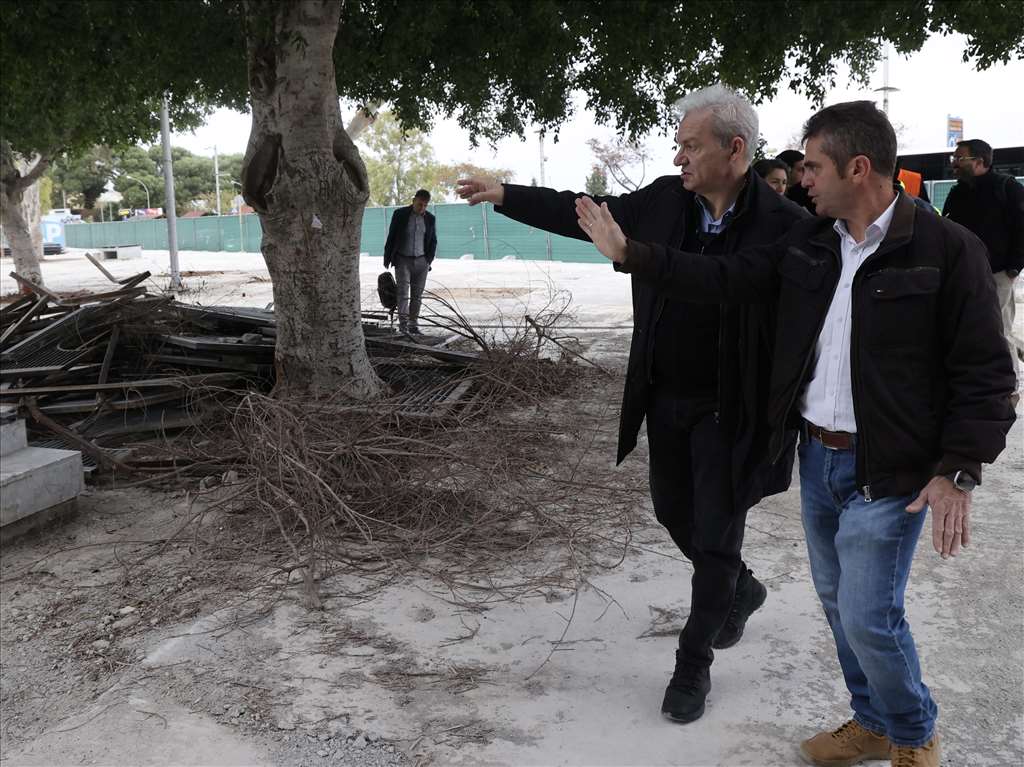 Αυτοψία στα εκτελούμε έργα ανάπλασης στην πλ. Ελευθερίας πραγματοποίησε νωρίς το πρωί της Παρασκευής 19/1/2024 ο Δήμαρχος Ηρακλείου Αλέξης Καλοκαιρινός, συνοδευόμενος από τον Αντιδήμαρχο Τεχνικών Έργων Γιώργο Σισαμάκη και υπηρεσιακά στελέχη του Δήμου.