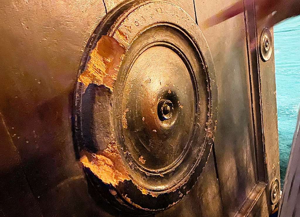 Οι βανδαλισμοί εντοπίζονται στην πόρτα ακριβώς κάτω από το μωσαϊκό προσφοράς των Αυτοκρατόρων.