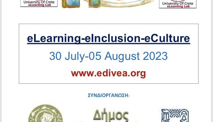 το Εκπαιδευτικό / Επιμορφωτικό Πρόγραμμα: eLearning – eInclusion – eCulture, στον Άγιο Νικόλαο Λασιθίου, από 30 Ιουλίου έως 5 Αυγούστου 2023.