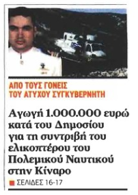 Αγωγή 1 εκατ. ευρώ κατά του Δημοσίου για την συντριβή του ελικοπτέρου του «Π.Ν.» στην Κίναρο