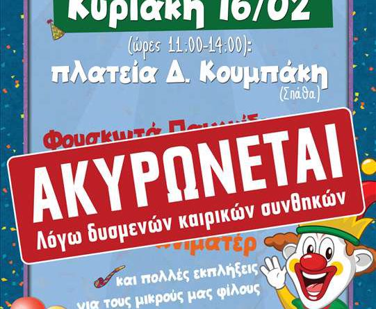 Ακύρωση αποκριάτικης εκδήλωσης στην πλατεία Διαμάντως Κουμπάκη
