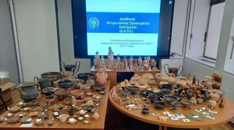 Σύμφωνα με την ΕΛΑΣ, κατασχέθηκαν κύλικες, φιαλίδια, λήκυθοι, πήλινα ειδώλια και ομοιώματα, πρόχοι, μικρογραφικοί σκύφοι αρχαϊκής και κλασικής/ελληνιστικής περιόδου, πήλινοι λύχνοι ρωμαϊκών/βυζαντινών χρόνων, χάλκινα και αργυρά νομίσματα, καθώς και θραύσματα κεραμικής.