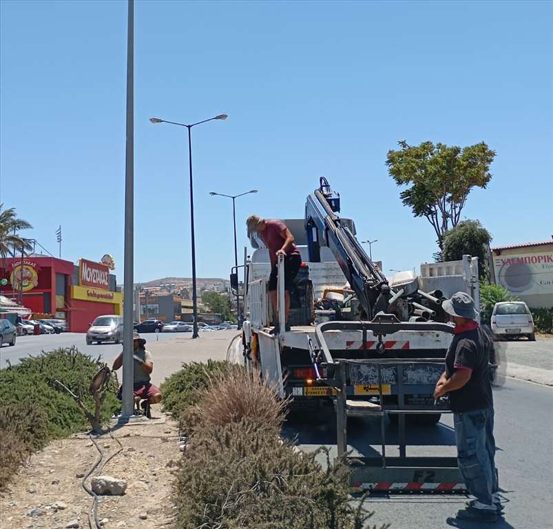 Με γρήγορους ρυθμούς προχωρούν οι εργασίες αντικατάστασης των παλαιών οξειδωμένων ιστών οδοφωτισμού στην Λ. Στ. Καζαντζίδη, από τη συμβολή της με την Λ. Ικάρου μέχρι την ράμπα εξόδου προς Ρέθυμνο – Χανιά και η αντικατάστασή τους με νέα φωτιστικά σώματα οικονομίας, τύπου LED.