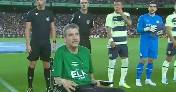O Χουάν Κάρλος Ουνθουέ ήταν το κεντρικό πρόσωπο στη φιλική αναμέτρηση της Μπαρτσελόνα με τη Μάντσεστερ Σίτι στο Κάμπ Νόου παρουσία 91.000 θεατών καθώς συγκλόνισε με το μήνυμά του για τη νόσο ALS.