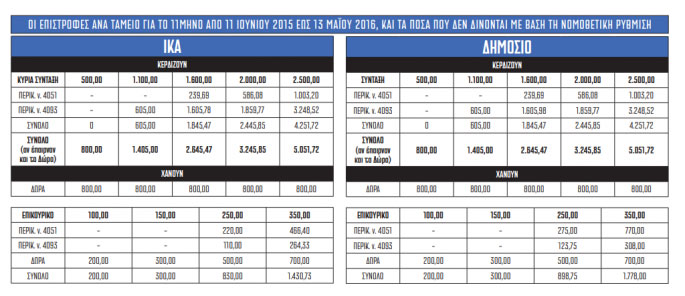 Τα μεγάλα ποσά που αγγίζουν και ξεπερνούν τις 7.000 ευρώ αφορούν κυρίως συνταξιούχους με άθροισμα συντάξεων το 2012 άνω των 3.000 ευρώ. Πρόκειται κατά κύριο λόγο για διπλοσυνταξιούχους που εισπράττουν δυο η περισσότερες κύριες συντάξεις (π.χ. χηρείας και γήρατος ή δυο γήρατος εξ ιδίου δικαιώματος από δήμοσιο και ιδιωτικό τομέα κ.α.) και υψηλοσυνταξιουχους του ΙΚΑ, των ΔΕΚΟ – Τραπεζών και του Δημοσίου που είχαν υψηλές και πολύ υψηλές συντάξεις το 2012.