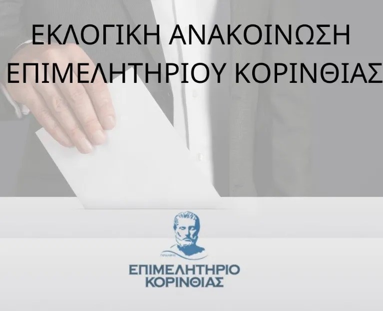 Η Εκλογική Επιτροπή του Επιμελητηρίου Κορινθίας που συγκροτήθηκε με την Αριθμ. Πρωτ. 52256/4-7-2024 απόφαση του Γραμματέα της Αποκεντρωμένης Διοίκησης Πελοποννήσου Δυτικής Ελλάδας και Ιονίου σύμφωνα με το Ν. 4497/2017 και το Π.Δ. 372/92 όπως ισχύει ανακοινώνει έπειτα από την απόφαση της Εκλογικής Επιτροπής οι προσεχείς εκλογές για την ανάδειξη του Διοικητικού Συμβουλίου του Επιμελητηρίου Κορινθίας θα διεξαχθούν με φυσική κάλπη σύμφωνα με τα οριζόμενα στον ν.4497/2017, και συγκεκριμένα θα πραγματοποιηθούν στις 30 Νοεμβρίου 2024 και στις 01 Δεκεμβρίου 2024.