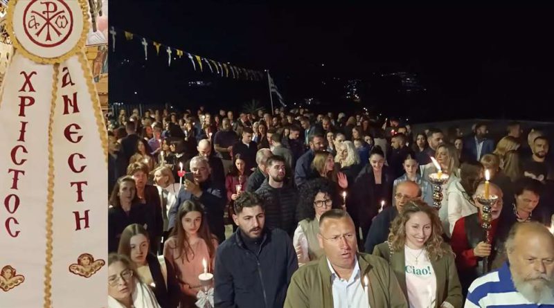 Από νωρίς το βράδυ του Μεγάλου Σαββάτου εκατοντάδες πιστοί από όλη την Κρήτη συνέρρευσαν στο Ιερό Ησυχαστήριο Αγίας Φωτεινής της Σαμαρείτιδος στα Ελληνοπεράματα, κρατώντας κεριά και λαμπάδες, για να ζήσουν την κατανυκτική ατμόσφαιρα της Ανάστασης,
