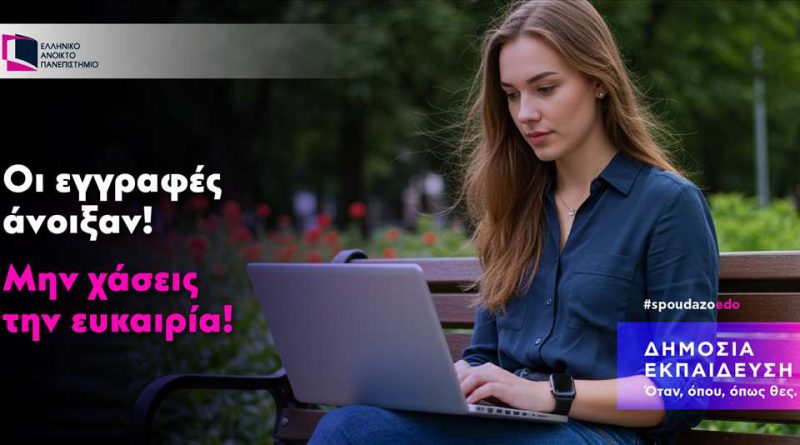 Το Ελληνικό Ανοικτό Πανεπιστήμιο (Ε.Α.Π.) ανακοινώνει την έναρξη της διαδικασίας υποβολής αιτήσεων για τα Προγράμματα Σπουδών του ακαδημαϊκού έτους 2025-2026. Με αξιοποίηση των δυνατοτήτων της εξ αποστάσεως εκπαίδευσης, το Ε.Α.Π. προσφέρει ευέλικτες σπουδές, δίνοντας τη δυνατότητα σε φοιτητές και φοιτήτριες να σπουδάζουν «όταν, όπου και όπως θέλουν».
