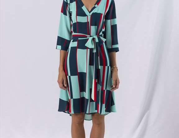 Μέχρι το γόνατο με βαθύ ντεκολτέ και γεωμετρικό print