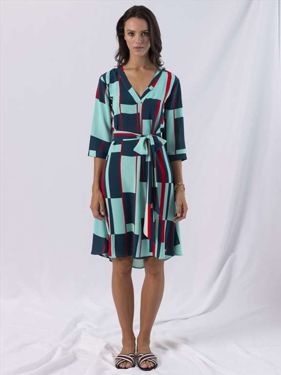 Μέχρι το γόνατο με βαθύ ντεκολτέ και γεωμετρικό print