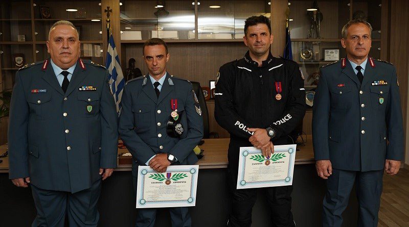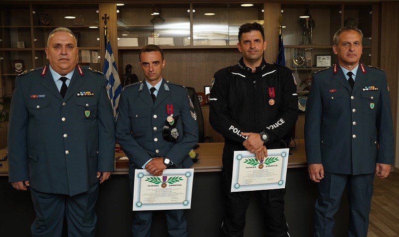 Απονομή μεταλλίων «Αστυνομικού Σταυρού» για εξαίρετη πράξη σε δύο αστυνομικούς της Ομάδας ΔΙ.ΑΣ