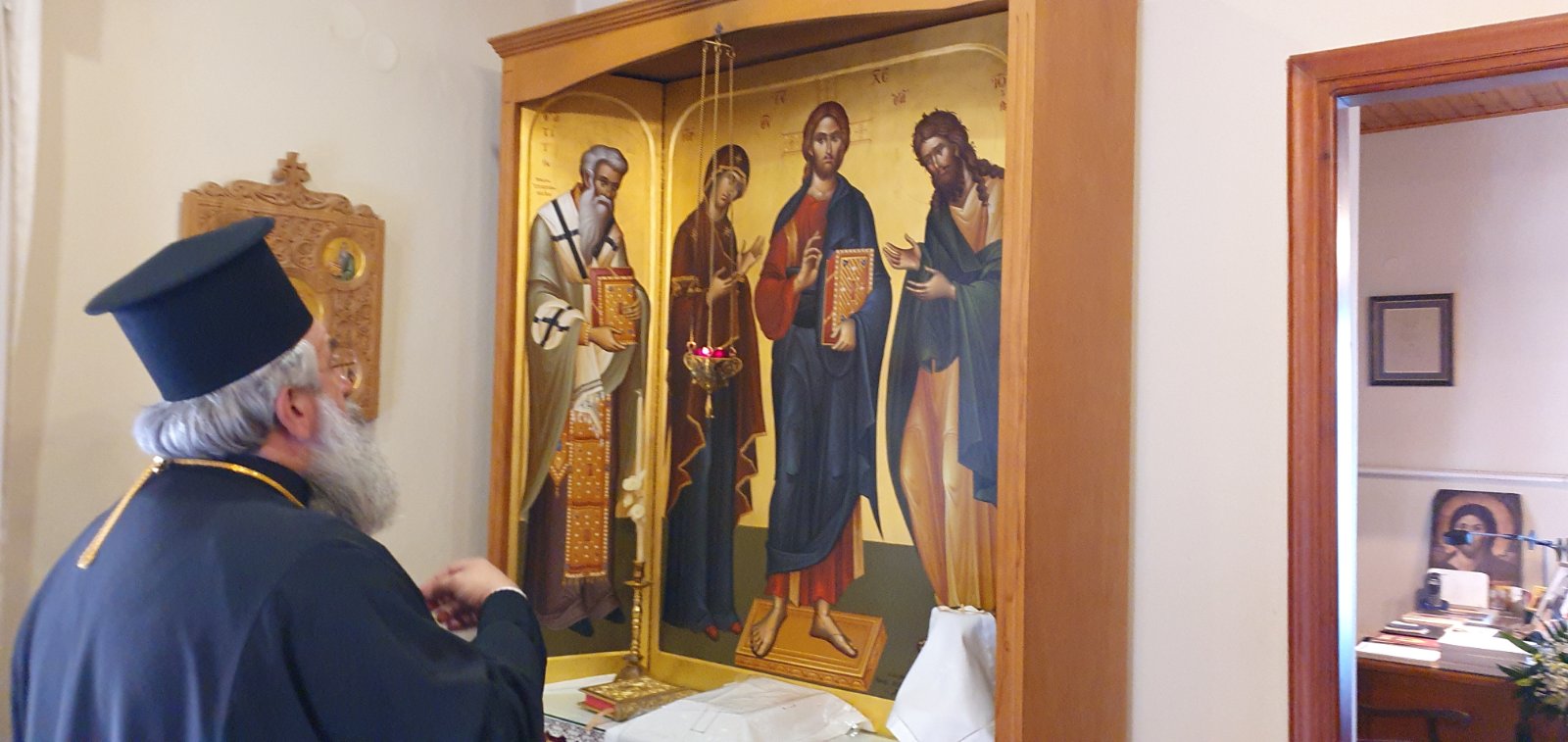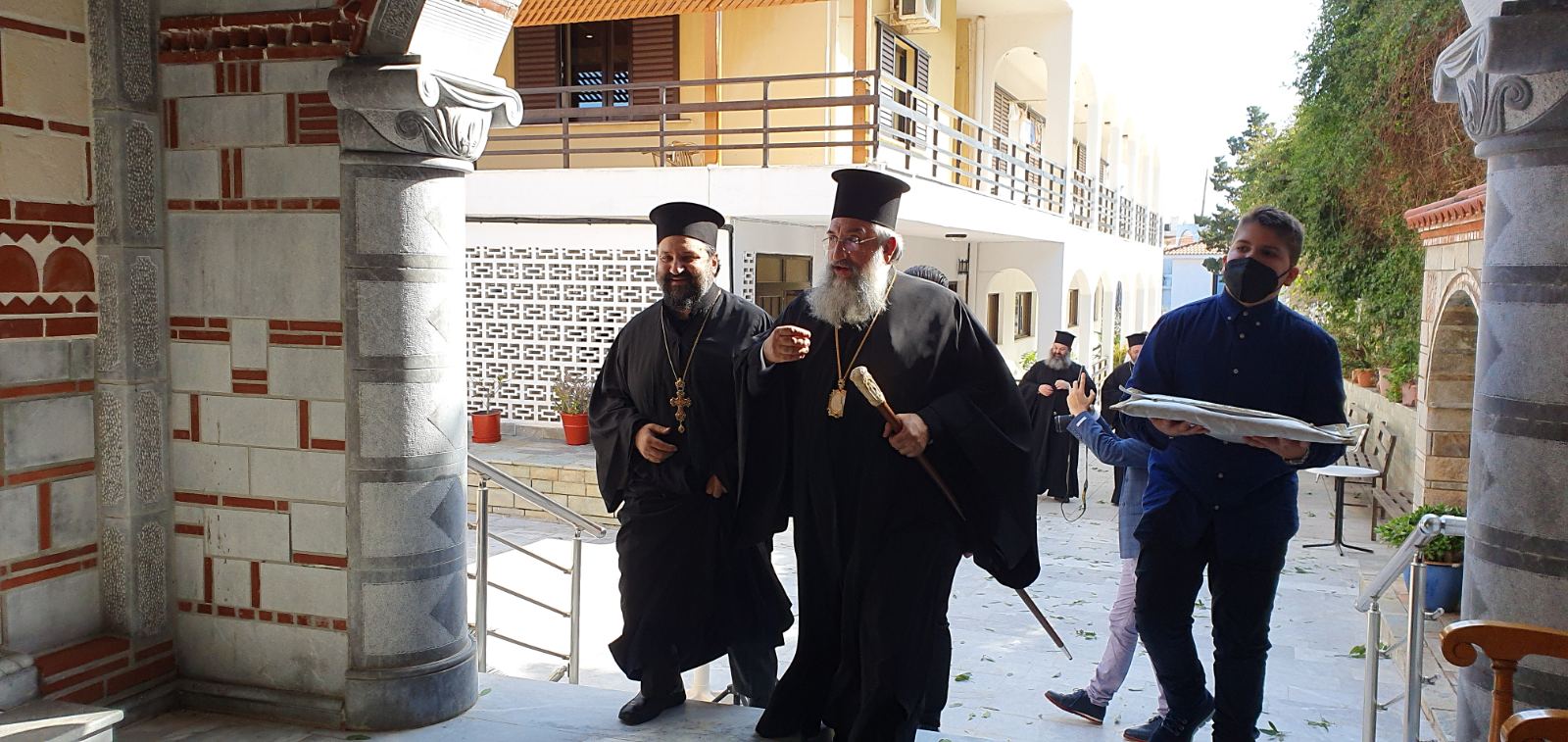 Με αγάπη και συγκίνηση τον υποδέχτηκαν η Ηγουμένη, οι μοναχές και ο πατέρας Νικόλαος Χουδετσανάκης, εφημέριος του Ιερού Ησυχαστηρίου.