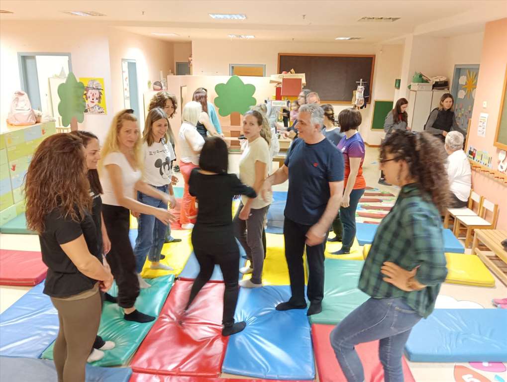 Ο φιλόξενος χώρος του Νηπιαγωγείου με προϊσταμένη τη Μαρίνα Ανδρωνά γέμισε την Τρίτη το απόγευμα στις 14 Μαΐου 2024 από παιδιά και γονείς που έκαναν παράλληλες δραστηριότητες. Ο προπονητής του Α.Σ. ΚΑΛΛΙΡΡΟΟΝ Μάνος Ταμιωλάκης με την βοήθεια της αθλήτριας Λαμπρινής Ξηρουχάκη και του Αντώνη Φραγκάκη έδειξε «Τεχνικές Αυτοάμυνας για Γυναίκες», στις οποίες οι συμμετέχουσες ανταποκρίθηκαν με θετική διάθεση και ζωντάνια.