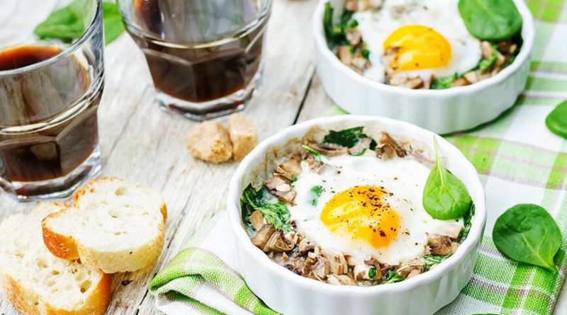 Αυγά στο φούρνο με σπανάκι και μανιτάρια