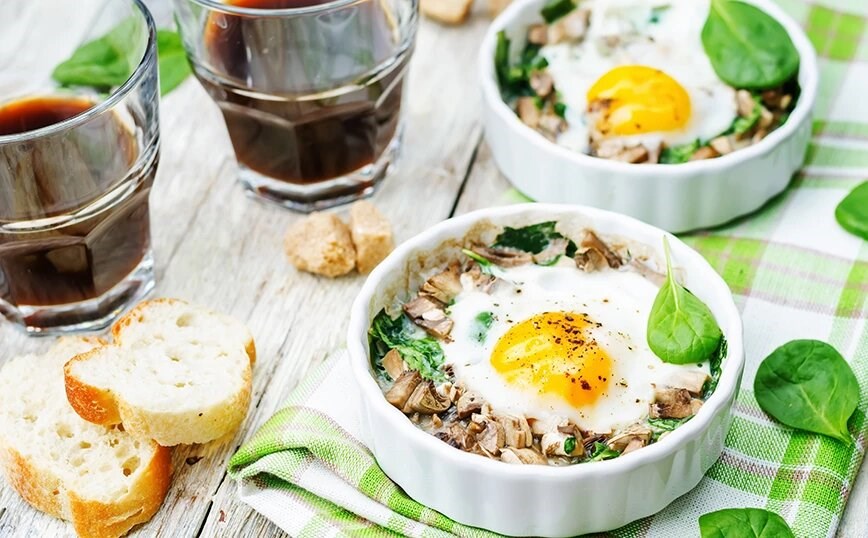Αυγά στο φούρνο με σπανάκι και μανιτάρια