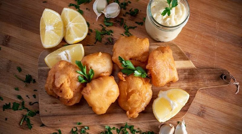 Βουτήξτε το μπακαλιάρο στο κουρκούτι και τηγανίστε σε δυνατή φωτιά μέχρι να αποκτήσει χρυσαφένιο χρώμα.
