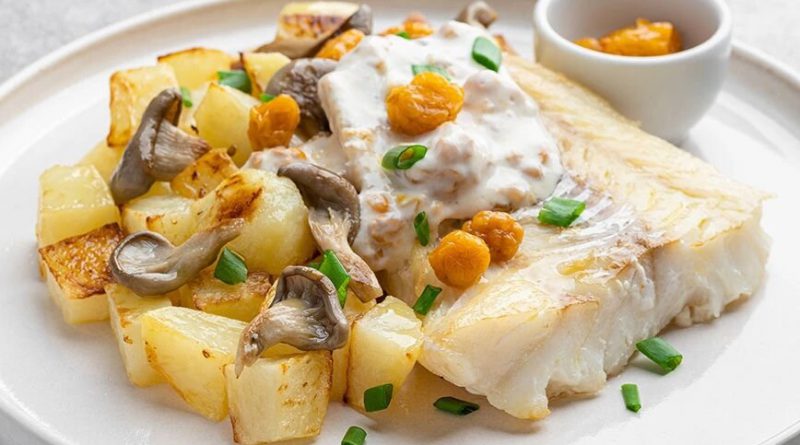 Μπακαλιάρος στο φούρνο με κρεμώδη σάλτσα δενδρολίβανου
