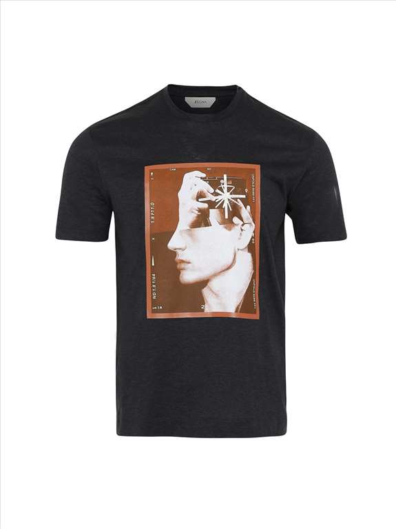 132999 Μπλούζα t-shirt κοντό μανίκι από μερσερικό βαμβάκι,είναι διακοσμημένο με μια εντυπωσιακή εκτύπωση αυτό το κανονικό στυλ ταιριάζει με ένα κλασικό στρογγυλό γιακά.Σύνθεση 100% cotton