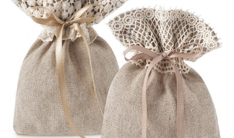 Λινό πουγκί σε καφέ απόχρωση με φάσα δαντέλα εκρού σε 2 σχέδια. Διαφορετικές διαστάσεις κατόπιν συνεννόησης