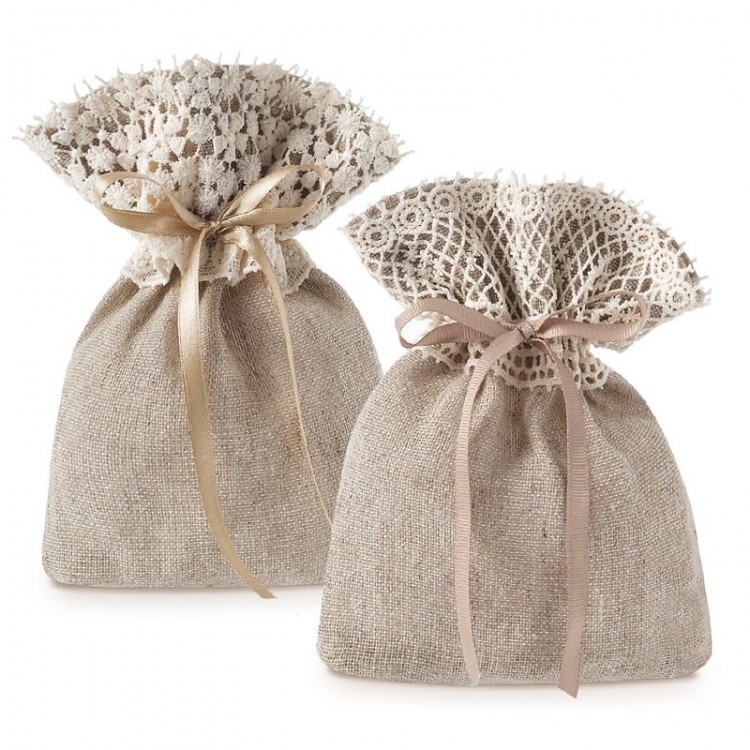 Λινό πουγκί σε καφέ απόχρωση με φάσα δαντέλα εκρού σε 2 σχέδια. Διαφορετικές διαστάσεις κατόπιν συνεννόησης