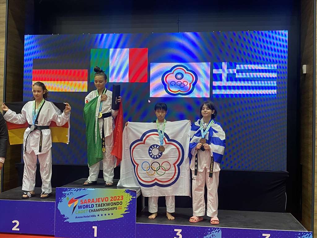 Το ελληνικό Ολυμπιακό ταεκβοντό στο βάθρο των νικητών και του Παγκοσμίου πρωταθλήματος παίδων και κορασίδων που άνοιξε αυλαία σήμερα στο Σεράγεβο. Λίγες ημέρες μετά τα τρία μετάλλια που κατέκτησαν οι έφηβοι στο Ευρωπαϊκό της Εσθονίας, η χώρα μας πανηγύρισε την κατάκτηση ενός Παγκόσμιου μεταλλίου, χάλκινης απόχρωσης, με πρωταγωνίστρια την Παρασκευή Καλογήρου στην κατηγορία των -148cm (-45 κιλά).
