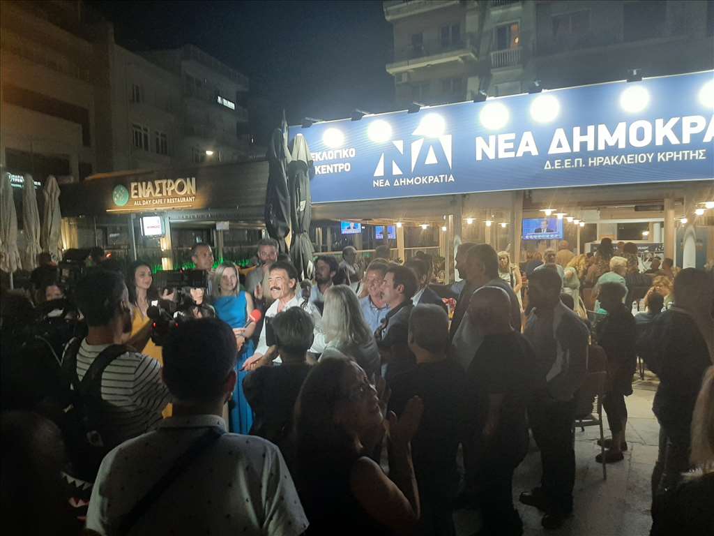 Με την Νέα Δημοκρατία να κερδίζει καθαρή αυτοδυναμία και την Κρήτη να βάφεται για δεύτερη φορά μπλε μέσα σε περίπου ένα μήνα, τα γραφεία της ΔΕΕΠ νομού Ηρακλείου (πρώην ΝΟΔΕ Ηρακλείου) πλημμύρισαν με κόσμο που γιόρτασαν τη θριαμβευτική νίκη του κόμματος.