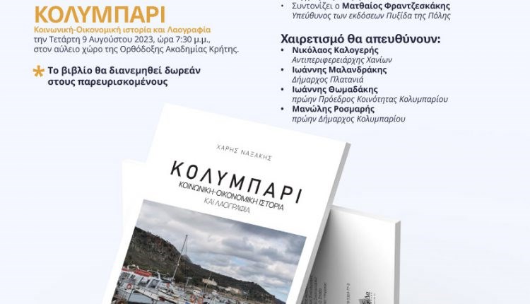 Χανιά: Παρουσίαση του βιβλίου του Χάρη Ναξάκη »Κολυμπάρι Κοινωνική – Οικονομική Ιστορία και Λαογραφία»
