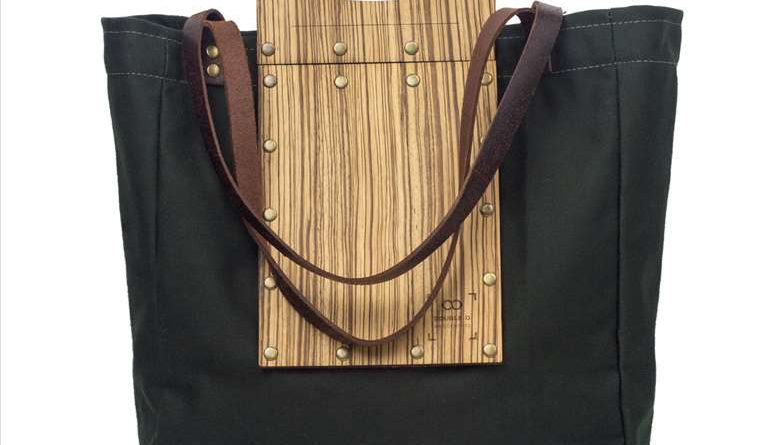 Χειροποίητη τσάντα χειρός από καμβά και ξύλο Zebrano, πράσινο σκούρο