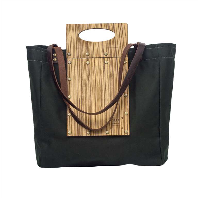 Χειροποίητη τσάντα χειρός από καμβά και ξύλο Zebrano, πράσινο σκούρο
