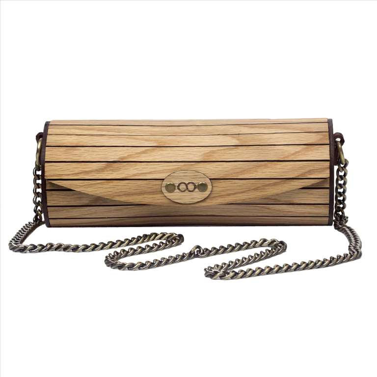 Χειροποίητη κυλινδρική τσάντα φτιαγμένη από 100% γνήσιο δέρμα με επένδυση από ξύλο δρυ. Μια μοναδική γυναικεία τσάντα για ξεχωριστές εμφανίσεις.