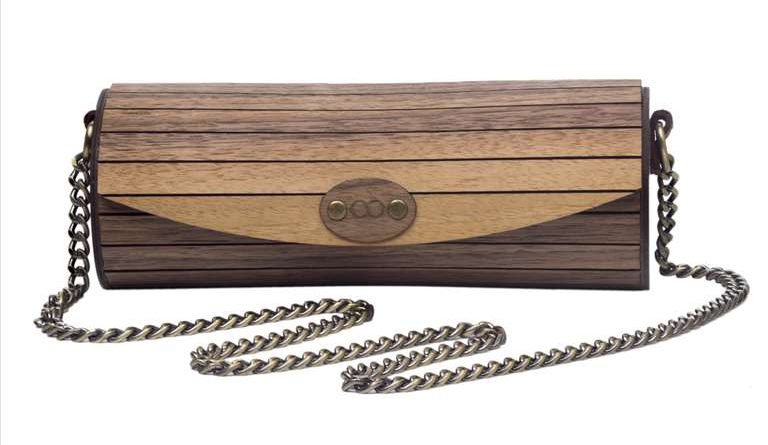 Χειροποίητη κυλινδρική τσάντα φτιαγμένη από 100% γνήσιο δέρμα με επένδυση από ξύλο καρυδιάς. Μια μοναδική γυναικεία τσάντα για ξεχωριστές εμφανίσεις.