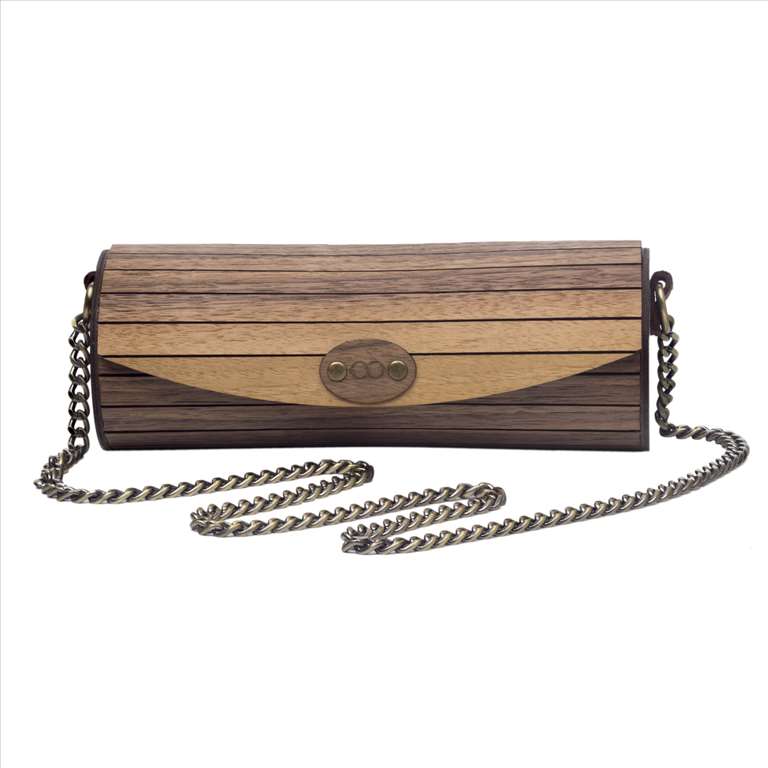 Χειροποίητη κυλινδρική τσάντα φτιαγμένη από 100% γνήσιο δέρμα με επένδυση από ξύλο καρυδιάς. Μια μοναδική γυναικεία τσάντα για ξεχωριστές εμφανίσεις.