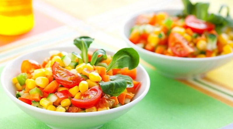 Ξεκολλήστε τους σπόρους καλαμποκιού από το «σώμα» του και προσθέστε τους σε ένα μεγάλο μπολ. Προσθέστε τα ντοματίνια, το κόκκινο κρεμμύδι, την πιπεριά και τον βασιλικό και ανακατέψτε. Περιχύστε με το ντρέσινγκ και ανακατέψτε καλά.