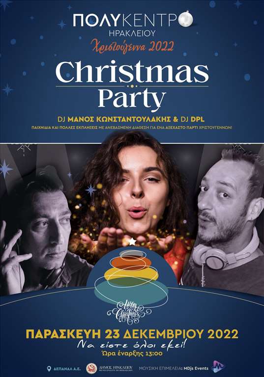 Το Πολύκεντρο Ηρακλείου διοργανώνει ένα ξεχωριστό Χριστουγεννιάτικο πάρτι με τον DJ Μάνο Κωνσταντουλάκη και τον DJ DPL την Παρασκευή 23 Δεκεμβρίου 2022. Το πάρτι θα ξεκινήσει νωρίς το μεσημέρι (13:00) με Χριστουγεννιάτικες μουσικές και όχι μόνο, παιχνίδια, πολλές εκπλήξεις και ανεβασμένη διάθεση!