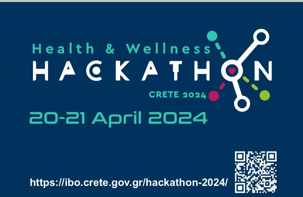 Ανακοινώνουμε την πραγματοποίηση του Διαγωνισμού Καινοτομίας «Hackathon for Health and Wellness Crete 2024», στις 20 και 21 Απριλίου 2024, παράλληλα στο Ηράκλειο και στην Αθήνα.