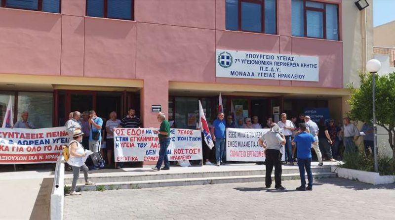 Διαμαρτυρία στην 7η ΥΠΕ Κρήτης από ενώσεις και συνδικάτα εργαζομένων