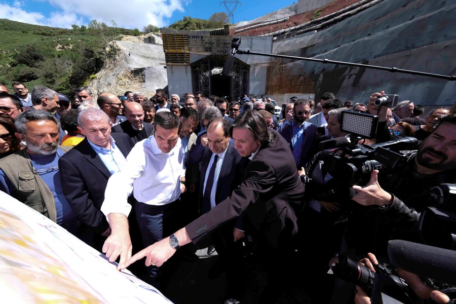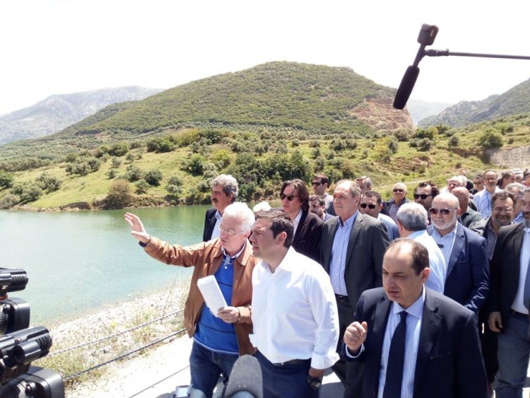 Ο πρωθυπουργός μετέβη στο ολοκληρωμένο υδραυλικό έργο του Φράγματος Αποσελέμη, αναγνωρίζοντας ότι "είχε πολύ νερό φέτος", λέγοντας μάλιστα χαρακτηριστικά "από βροχή δεν έχετε παράπονο εφέτος". Στην ενημέρωση που του έγινε τονίστηκε ότι "με μία καλή διαχείριση όσες περιοχές τροφοδοτούνται από τον Αποσελέμη δεν θα διψάσουν ποτέ". Στελέχη του Οργανισμού Ανάπτυξης Κρήτης τόνισαν ιδιαίτερα και πως "το νερό του Αποσελέμη είναι εξαιρετικής ποιότητας". Μάλιστα εργαζόμενοι στο διυλιστήριο είπαν στον πρωθυπουργό πως "λόγω της σήραγγας δεν θα ξαναδούμε άδειο τον Αποσελέμη".