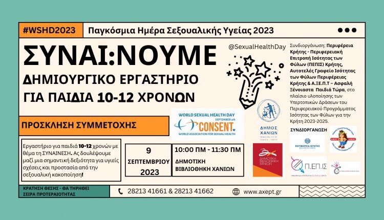 Δήμος Χανίων: Εκδήλωση για την Παγκόσμια Ημέρα Σεξουαλικής Υγείας «ΣΥΝΑΙ:NOYME – Συναίνεση, μία σημαντική δεξιότητα για υγιείς σχέσεις και προστασία από τη σεξουαλική κακοποίηση»