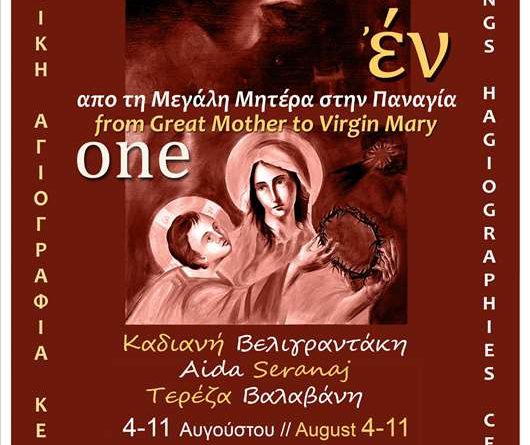 Η θεματική έκθεση Ζωγραφικής, Αγιογραφίας και κεραμικής: Έν.“Απο τη Μεγάλη Μητέρα στην Παναγία”,αποτελείται από μία σειρά 40 ζωγραφικών έργων και κεραμικών γλυπτών. Τα έργα ζωγραφικής και αγιογραφίας είναι δουλεμένα κυρίως με τις τεχνικές του λαδιού, ακρυλικών, ακουαρέλας και σκόνες αγιογραφίας σε χαρτί, καμβά ή ξύλο με θέμα το αρχετυπικό πρότυπο της ιερής μητέρας και την εξέλιξη του. Απο τη μινωϊκή εποχή έως τη χριστιανική και τη Μεγάλη Μητέρα θεά έως τη σεβάσμια μορφή της Παναγίας.