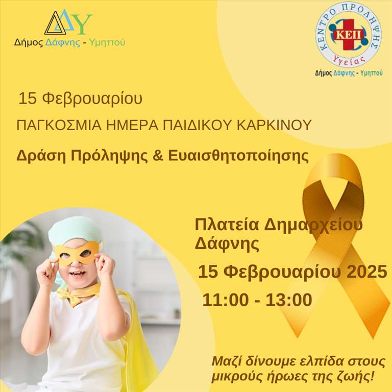 Δήμος Δάφνης-Υμηττού: Δράση Ευαισθητοποίησης για την Παγκόσμια Ημέρα Παιδικού Καρκίνου