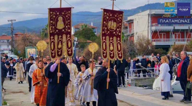 Λαμπρότητα και θρησκευτική κατάνυξη χαρακτήρισαν τις τελετές καθαγιασμού των υδάτων την ημέρα της εορτής των Θεοφανίων στις δώδεκα κοινότητες του Δήμου Δίου-Ολύμπου. Ο Σεβασμιώτατος Μητροπολίτης Κίτρους, Κατερίνης και Πλαταμώνος κ.κ. Γεώργιος, χοροστάτησε στην τελετή του Αγιασμού στον Πλαταμώνα. Ο Δήμαρχος Δίου-Ολύμπου, Βαγγέλης Γερολιόλιος και η Αντιπεριφερειάρχης Πιερίας, Σοφία Μαυρίδου, παρακολούθησαν την εορταστική δοξολογία στο Λιτόχωρο, όπου παρευρέθηκαν εκπρόσωποι της τοπικής αυτοδιοίκησης, των Ενόπλων Δυνάμεων, συλλόγων και φορέων της κοινότητας Λιτοχώρου. Η υφυπουργός Ανάπτυξης, Άννα Μάνη-Παπαδημητρίου, παρακολούθησε την αρχιερατική δοξολογία στον Πλαταμώνα, όπου χοροστάτησε ο Μητροπολίτης κ. Γεώργιος.