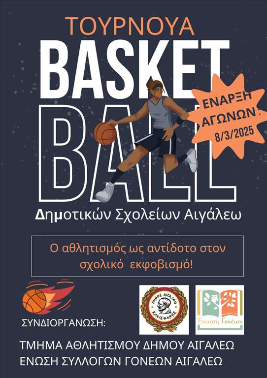 Το Αθλητικό Τμήμα του Δήμου Αιγάλεω και η Ένωση Συλλόγων Γονέων Αιγάλεω ενώνουν δυνάμεις και συνδιοργανώνουν ένα ξεχωριστό τουρνουά μπάσκετ για τους μαθητές της Ε’ και ΣΤ’ τάξης των Δημοτικών Σχολείων της πόλης.
